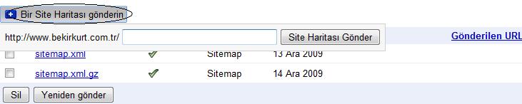 Daha sonra Bir Site Haritası Gönderin sekmesine basarak site haritanızın url’sini giriyoruz.